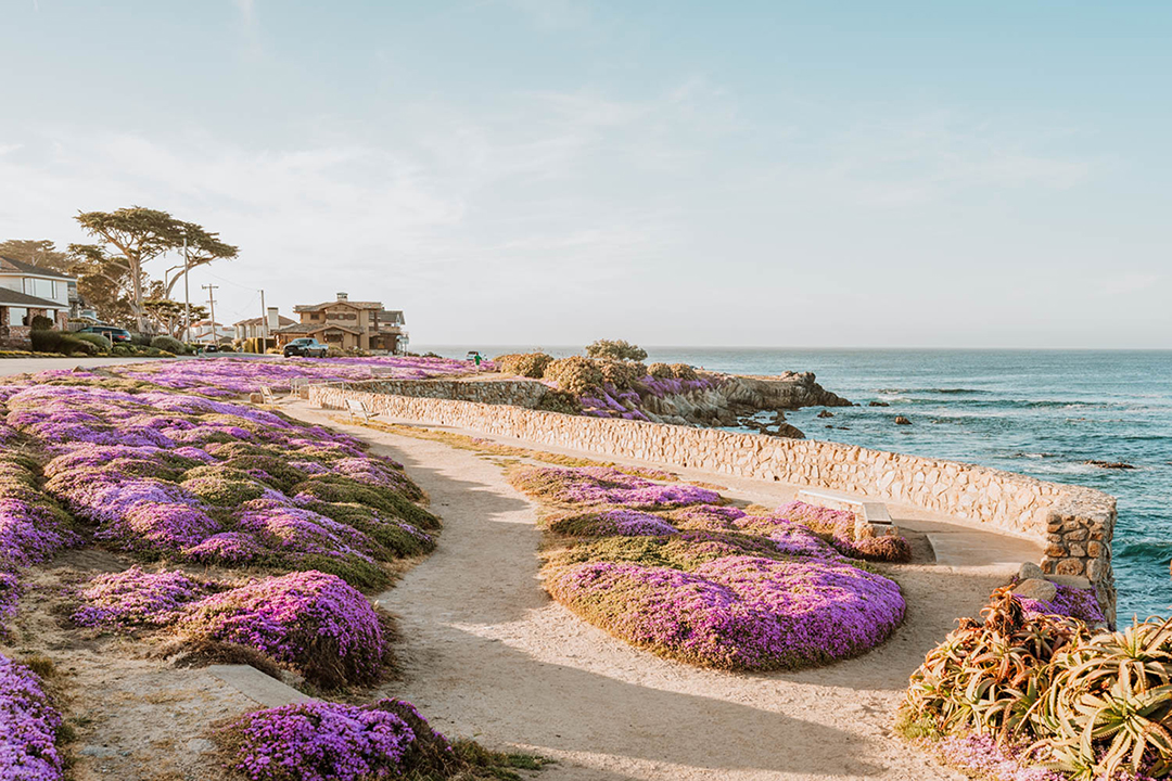 Perkins Park is a stunning stretch of the Pacific Grove coastline and is covered with ice plants. During the spring months these flowers bloom to cover the park with bright purple flowers. This is an incredible bloom called the “Magic Carpet” or “Purple Carpet” by locals, and is a view like no other, giving you a vibrant photo as the blue of the water contrasts with the bright flowers. The blooms peak in April and May so be sure to plan your visit soon!
