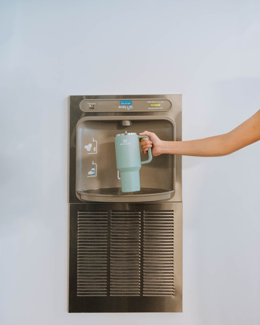 Water stations are located throughout the hotel, and can be found in the lobby, in the fitness center, and on the 2nd, 3rd (two locations), 4th, 5th, and 6th floors. These filtered stations make it easy for guests to refill and stay hydrated without relying on single-use plastic bottles. For added convenience, 24oz Hydro Flasks are also available for purchase at the front desk.